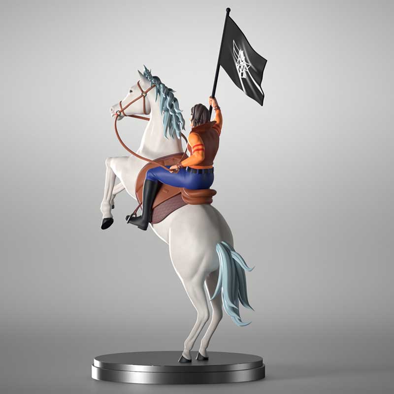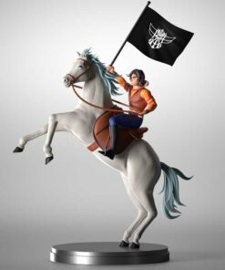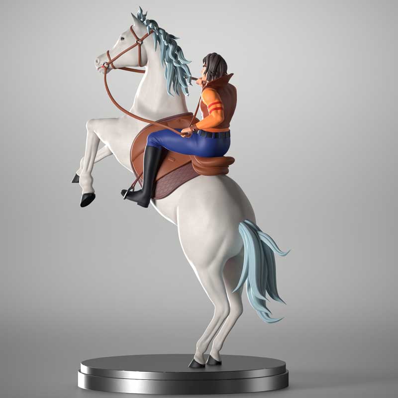 A custom figure of “Daisuke”, the hero of the cartoon Grendizer (or Goldorak), in his rider mode (on horseback).