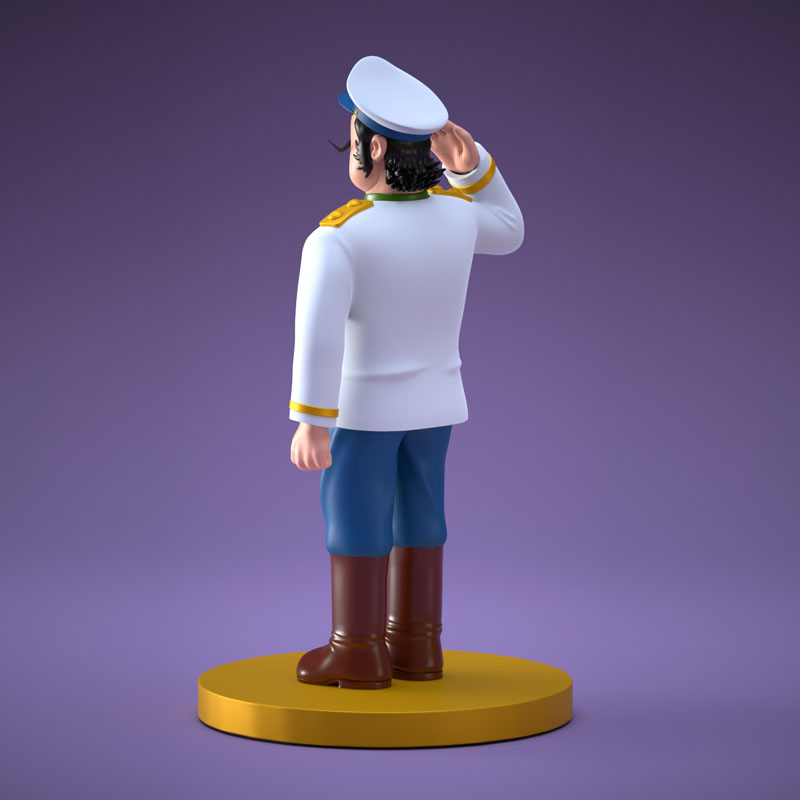 A comical, loyal, and big-hearted ally, this model captures one of his signature poses: the military salute.