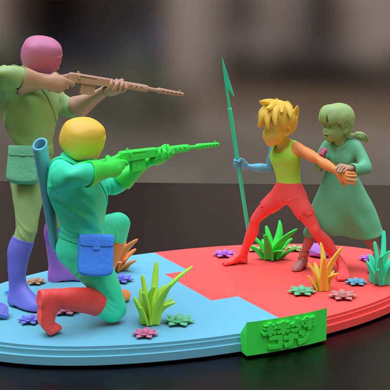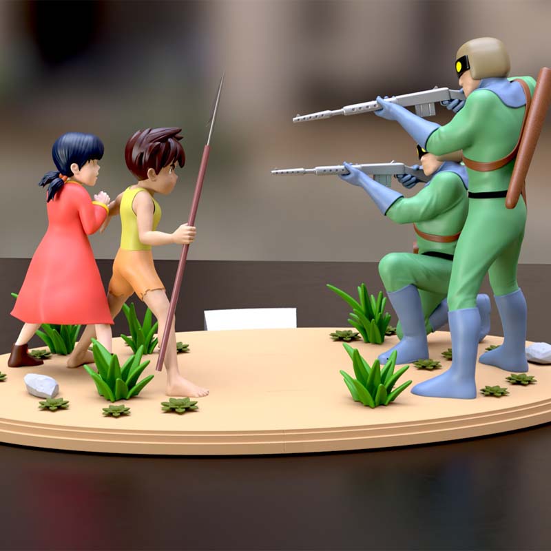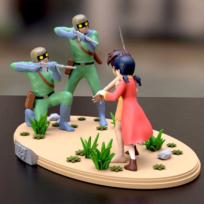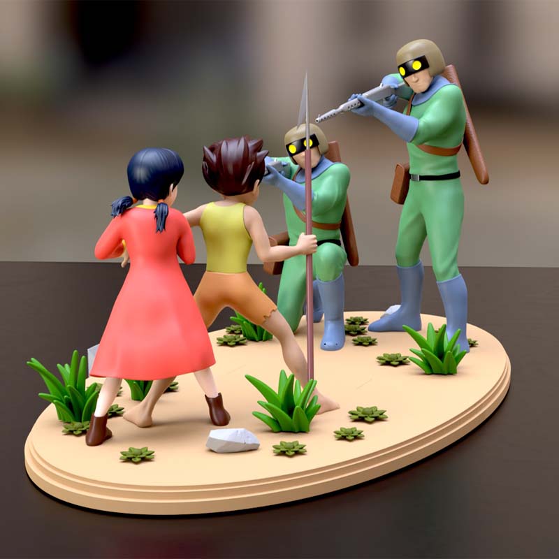 A more elaborate diorama depicting Conan protecting Lana from enemy soldiers.