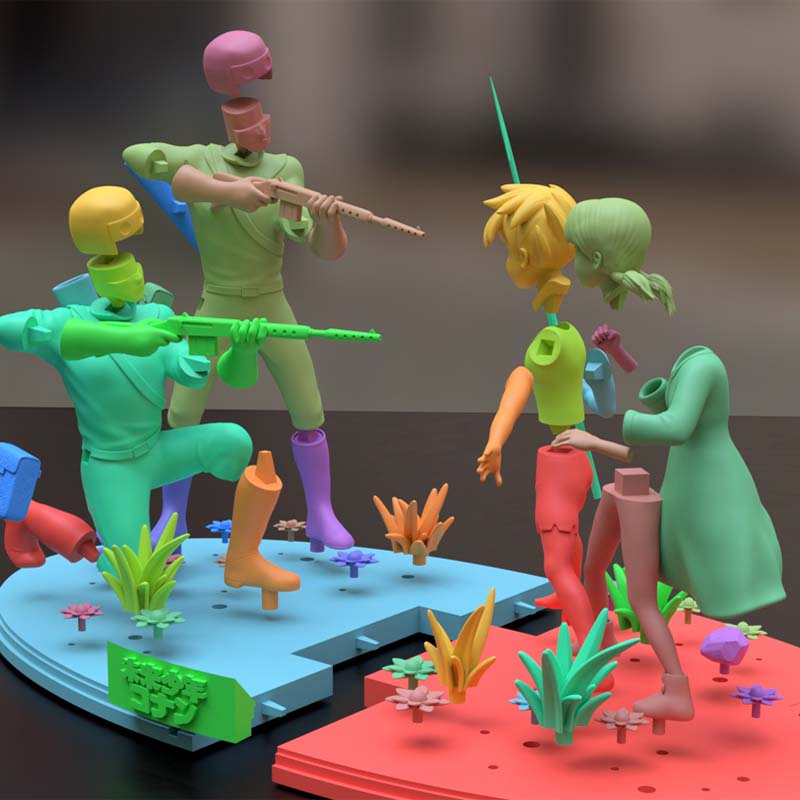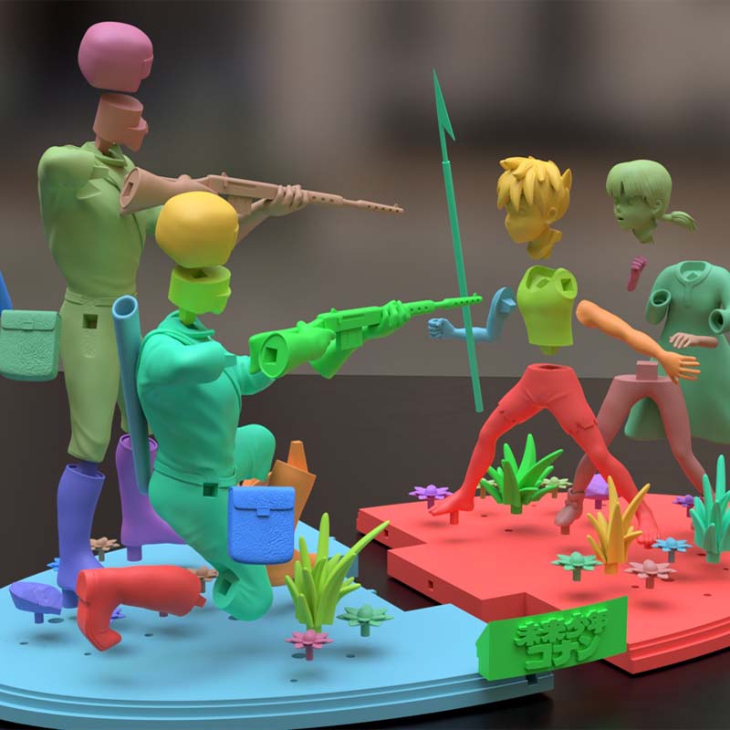 The diorama is divided into 53 parts to facilitate both printing and painting.