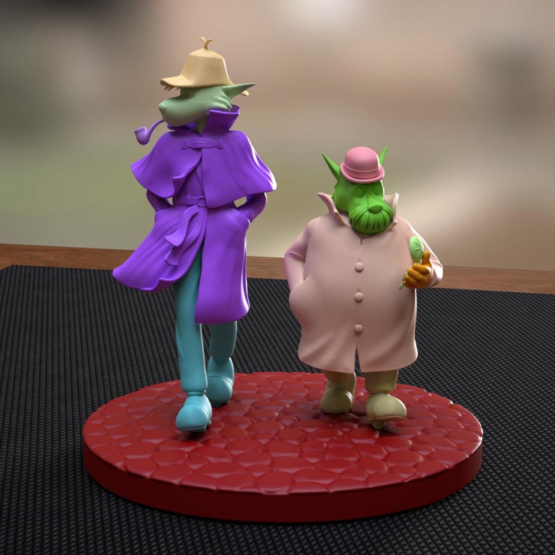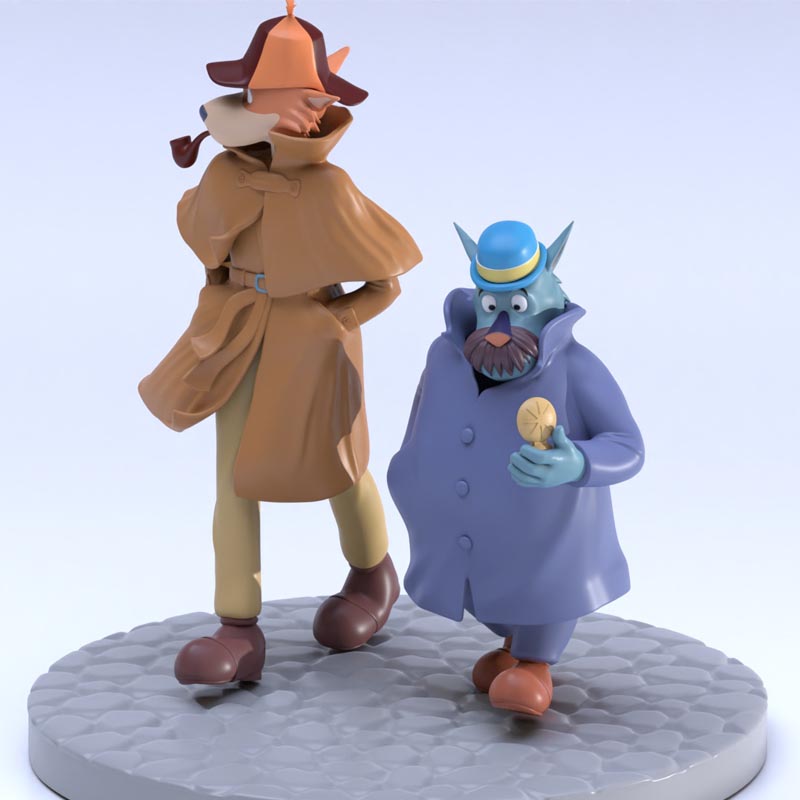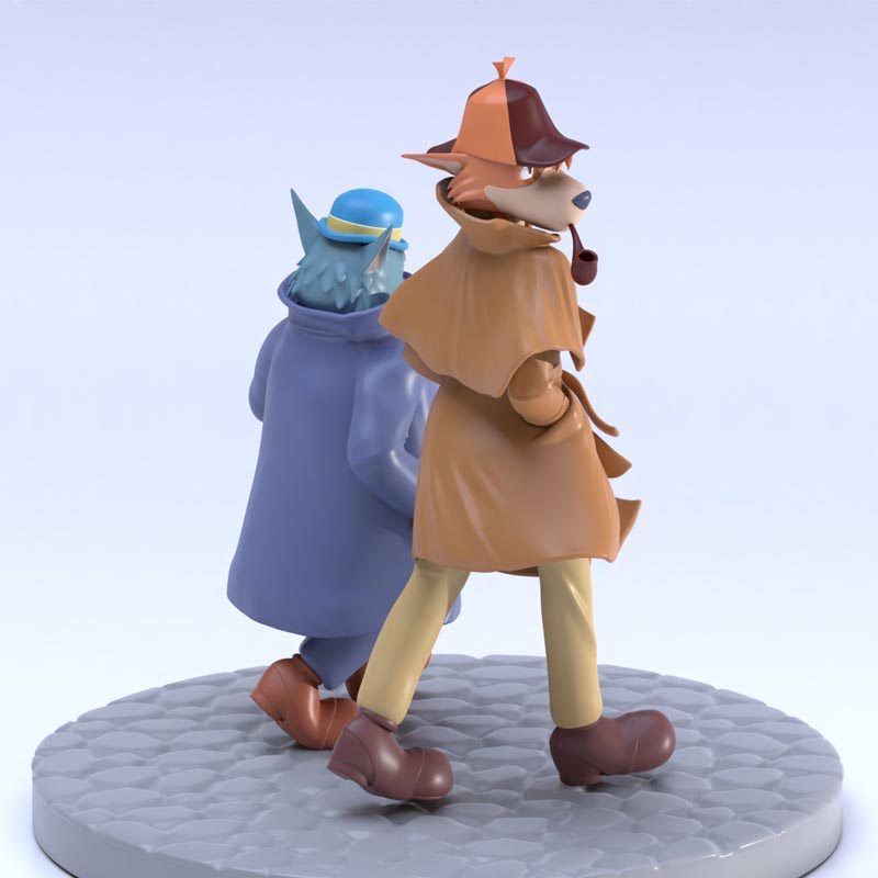 A small diorama featuring the famous duo, “Sherlock Holmes” & “Watson,” from the classic anime of the same name, directed by Miyazaki.