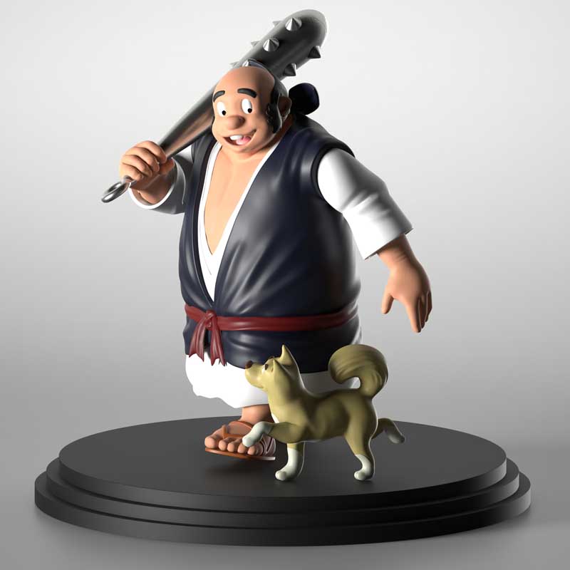 « Jambo le puissant » est le fidèle compagnon de « Sarutobi Sasuke » le ninja espiègle. Il le suit toujours avec son chien.