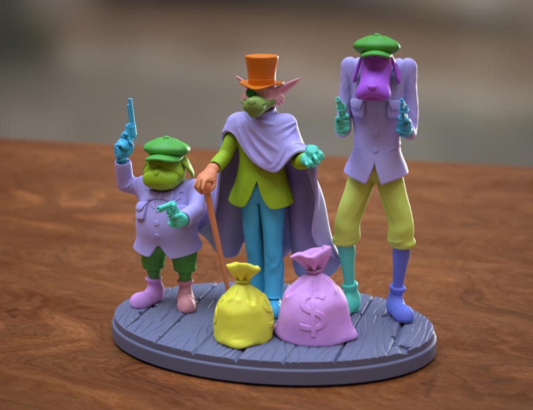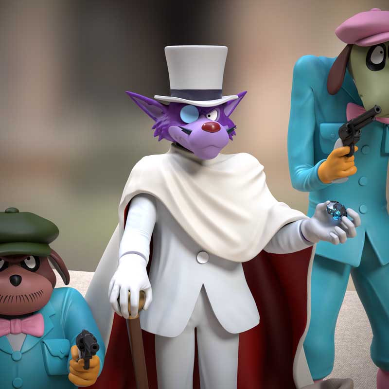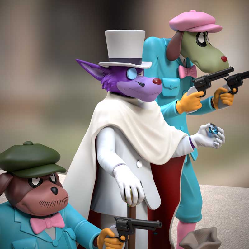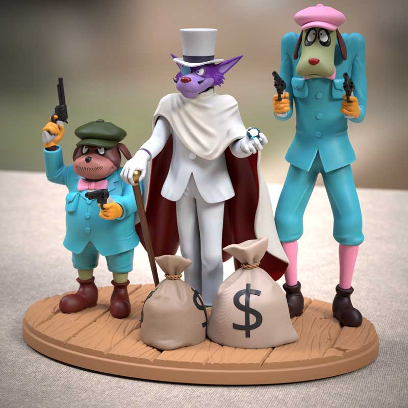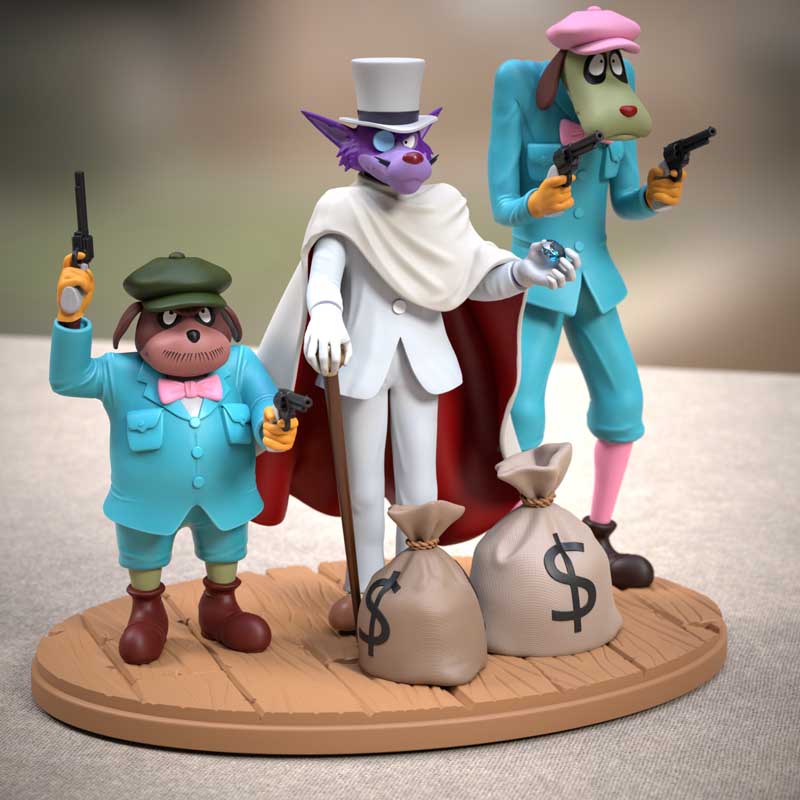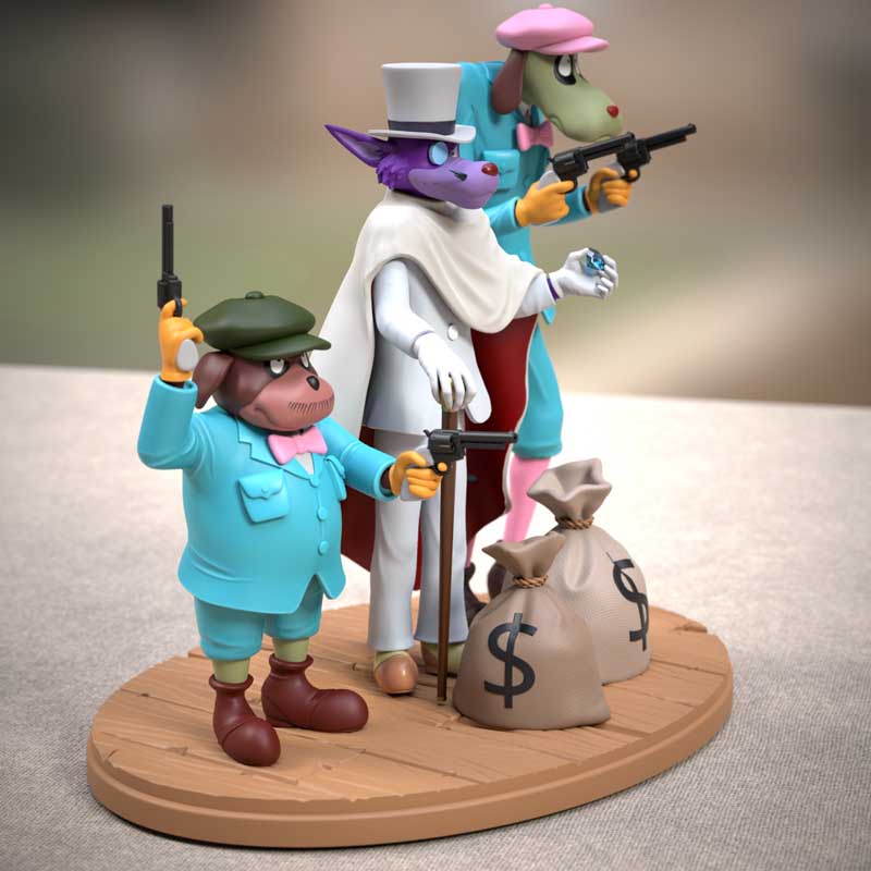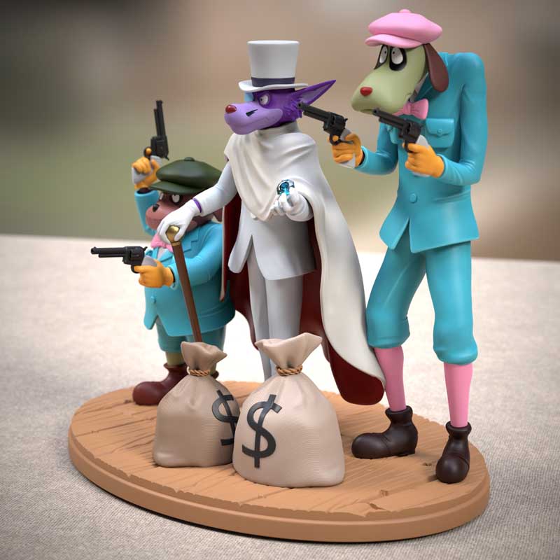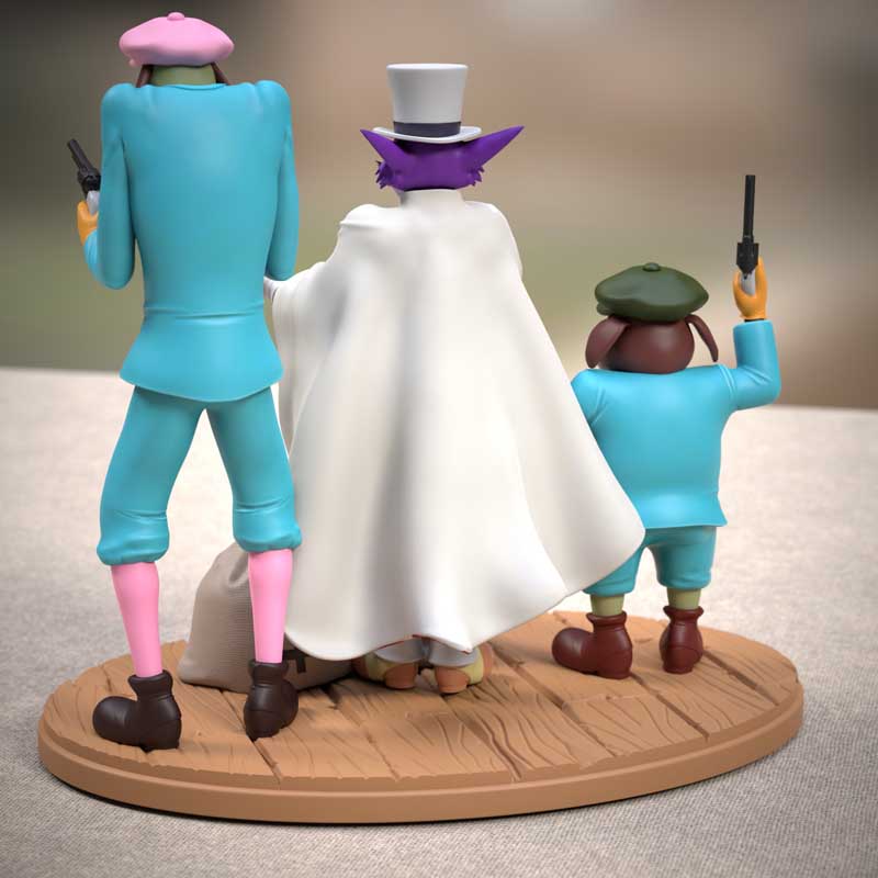 Un diorama custom représentant le gang à Moriarty au grand complet avec ses deux acolytes Smiley et Todd.